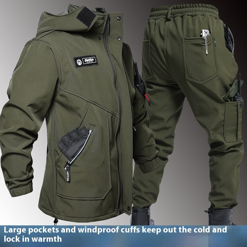 Autumn And Winter Fleece-lined Waterproof Jacket Suit