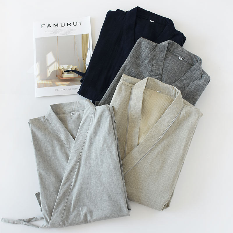 Color: men's, gray robe, men's gauze navy blue pajamas