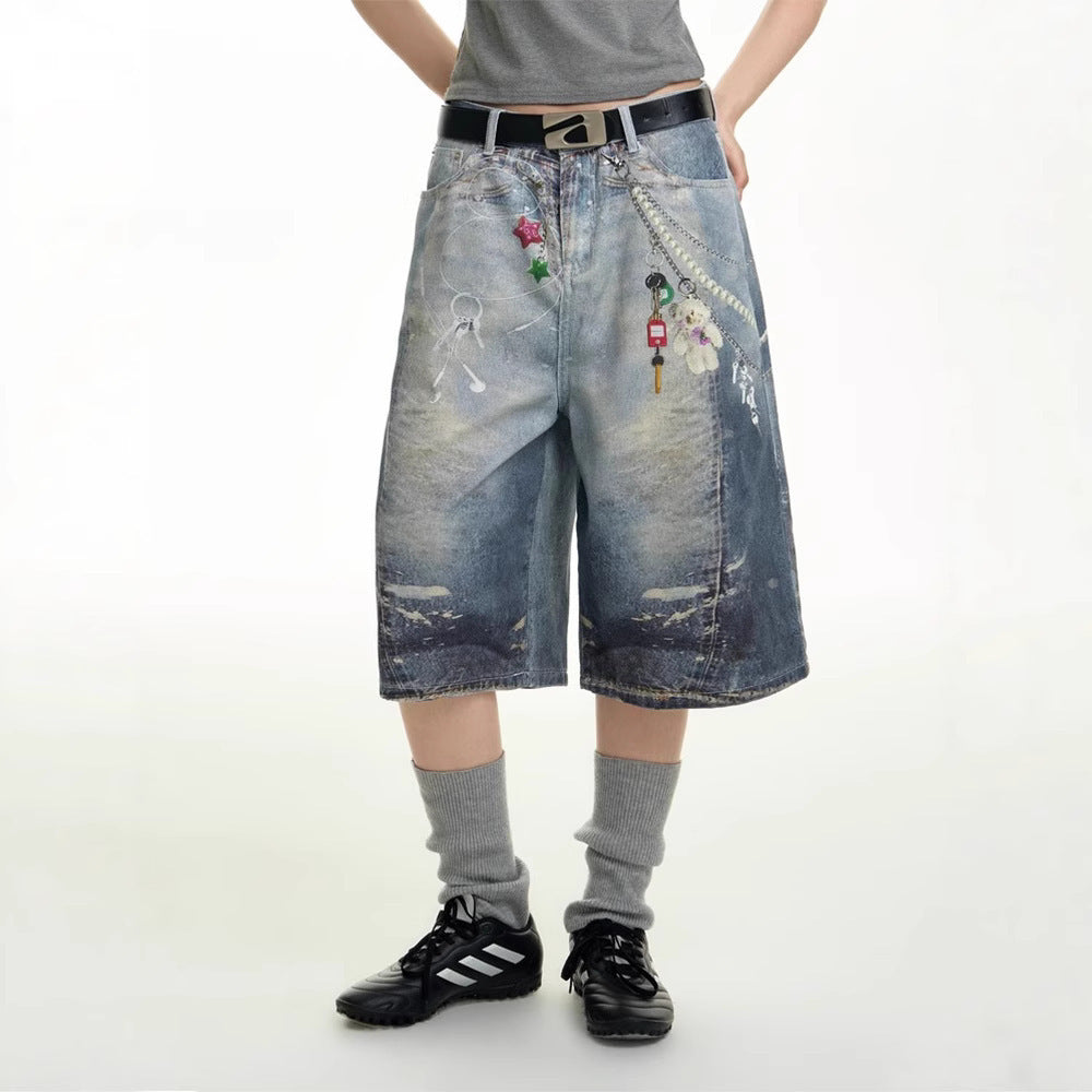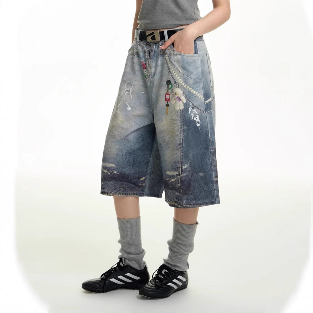 Men's Summer New Straight American Style Loose Casual Capri Pants
